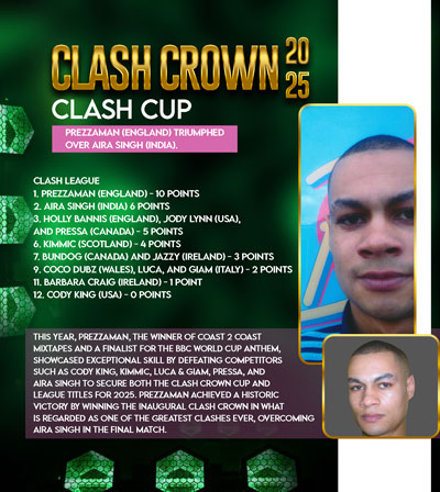 The Clash Crown Final features the male winner of the King Of The Spring competing against the female winner of the Queen Of The Scene. Prezzaman secured the title of King Of The Spring, while Aira Singh claimed the title of Queen Of The Scene, leading to their matchup in the Clash Crown final to establish the overall champion.